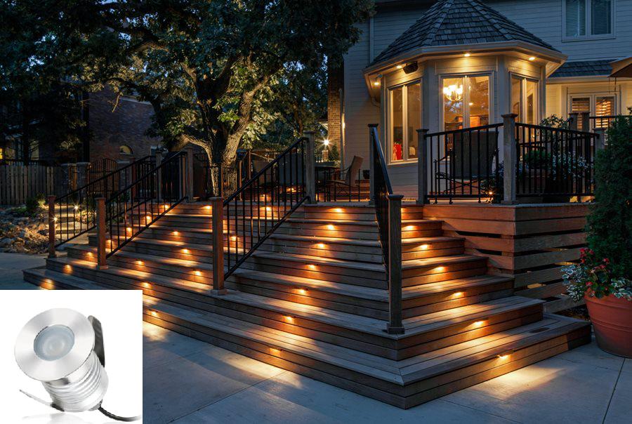 These lights are typically small and are used to illuminate decks, patios, and steps. They are often recessed into the ground or built into the deck itself.